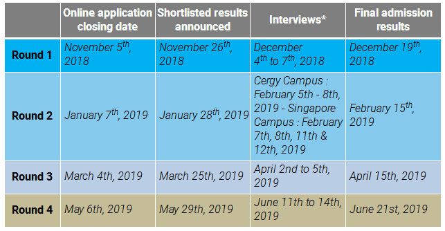 以上是ESSEC本科项目2019年秋季入学的申请批次,一共有四个批次。目前申请2019年秋季入学的录取已经截止。