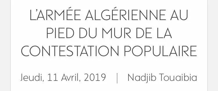最近局势动荡的阿尔及利亚,在Abdelaziz Bouteflika 宣布不再谋求第五任期之后,军方的处境尴尬起来,于是媒体评价说: