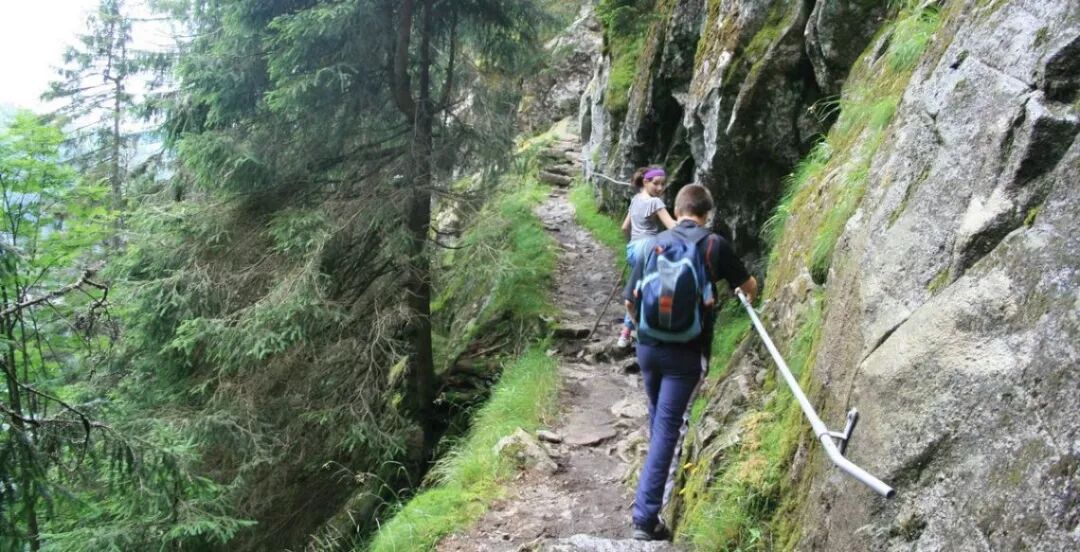 岩石小径名副其实,徒步者们需要沿着岩壁跋涉前行,有些地方仅仅只能站下一只脚!隔着屏幕法小旅都看得惊心动魄。