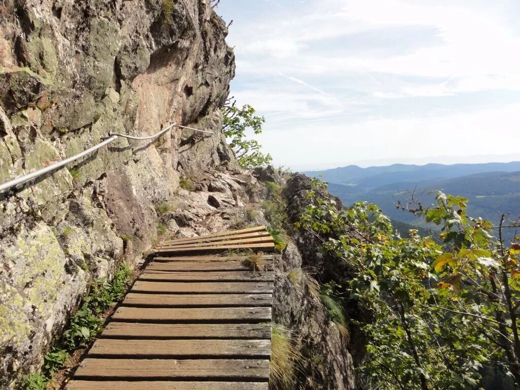 岩石小径(Sentier des Roches)需要有胆量和经验的徒步者来挑战啦。它起于施鲁尔特山口(Col de la Schlucht),止于弗兰肯塔尔(Frankenthal),是孚日山脉最著名也是徒步者最多的小径之一。