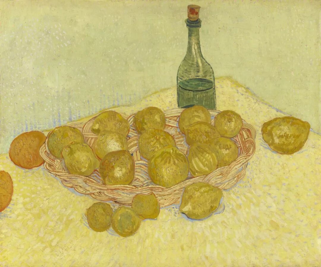 瓶子、柠檬和橘子的静物/梵高/1888年
