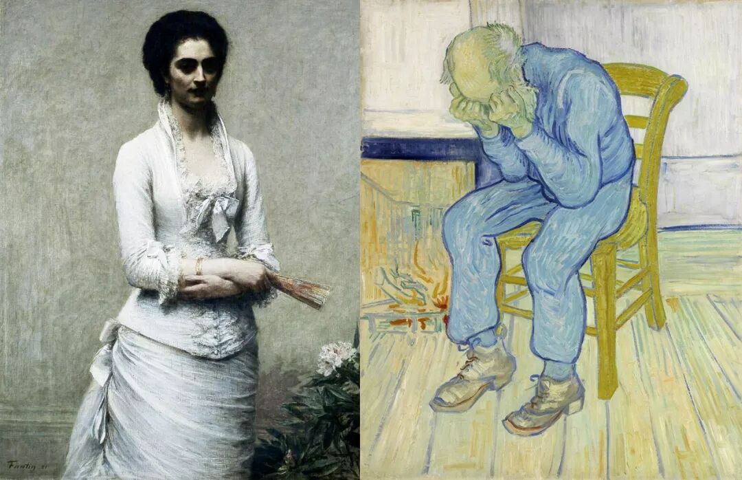 安东送出的两张画:右面一张是来自梵高的《永恒之门》又名《悲伤的老人》/1890年,左边的则是亨利·方丹·拉图尔的《 Eva Callimachi-Catargi的肖像》/1881年,两人都是海琳非常喜欢的艺术家的作品,这也是安东偷偷买下的,只为给妻子一个惊喜。