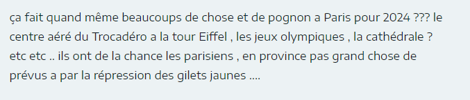 外省人表示不开心:因为2024年奥运会,巴黎不停地建建建,巴黎人真的是幸运呀,在外省,除了对黄马甲的压制,我们啥都没有...