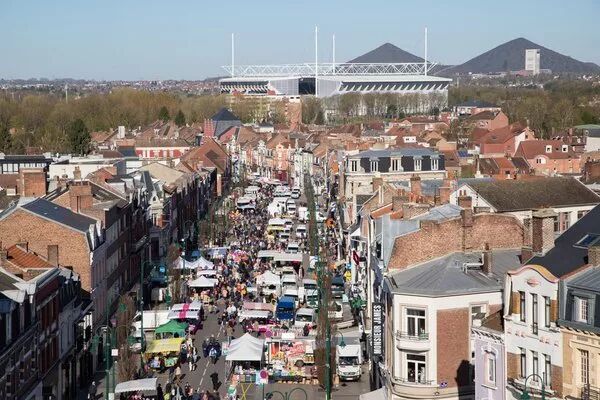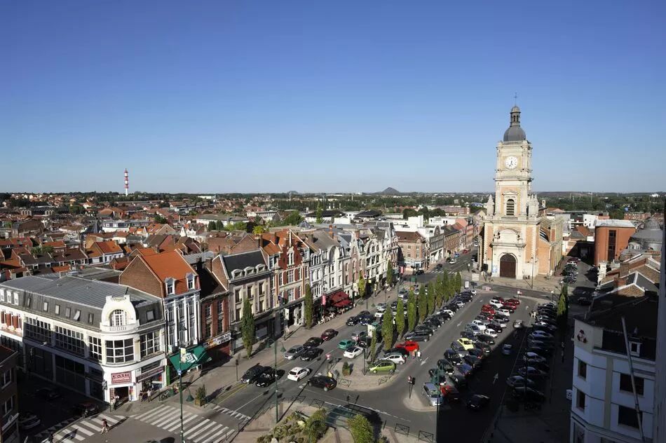 远处废石堆与广场上的圣莱热教堂(Église Saint-Léger)构成了城市独一无二的天际线。每年4月,大型朗斯旧货市集(La Braderie de Lens) 会在广场上举办。