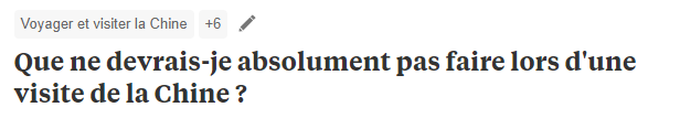 那,今天就带大家看看Quora法语版(法国知乎)上,喜欢问奇奇怪怪问题的法国沙雕网友,对于去中国旅游,或者在中国生活,是怎么看的呢?
