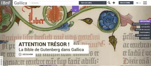 ▲ 网络版法国国家图书馆,里面有很多电子版的国图资源可以在线查看。