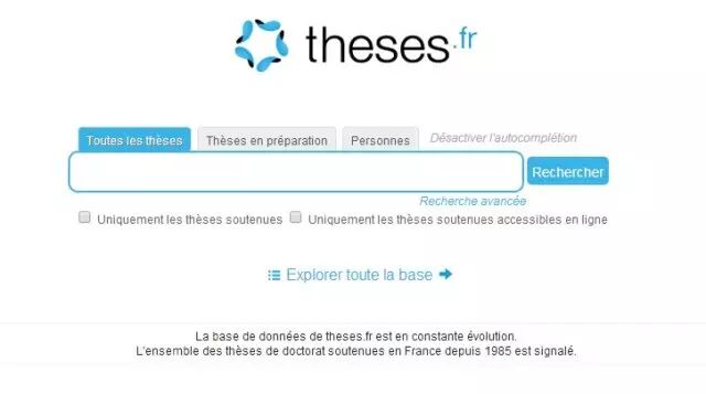 ▲ 博士论文库,汇集了1985年以来在法国通过答辩的论文,其中一些可以免费下载。