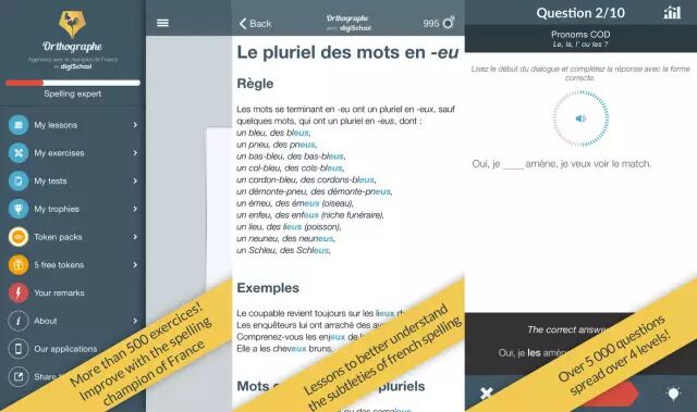 软件全名是French spelling with digischool and Orthodidacte,这是一个拼写神器。这个app主要针对法语拼写、动词变位和法语的学习,简直是法语学习必备app。