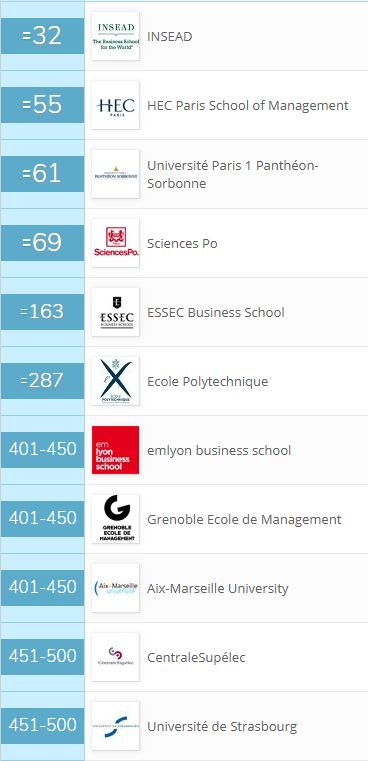 第201-250名:INSEAD、巴黎政治大学、巴黎七大、巴黎十大
