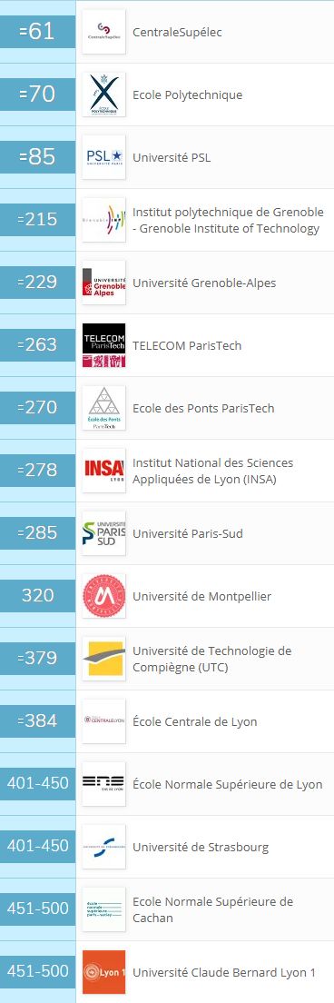 第101-150名: CentraleSupelec、巴黎电信(TELECOM)