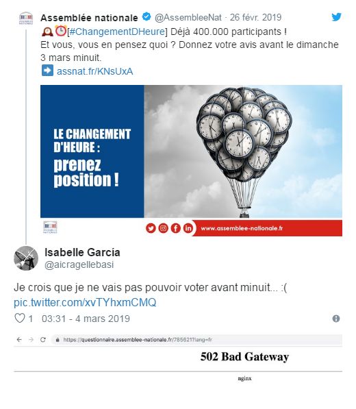 但人们的意志岂能被个502 Bad Gateway就挫败,既然问卷调查进不去,那就直接在国民议会的推特下表明立场!